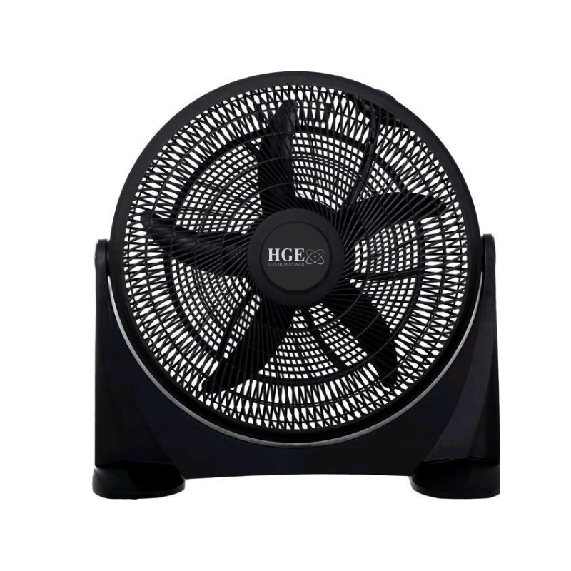 Ventilateur HGE Express - Puissance : 80W - Vitesse de Rotation : min 850tr/min, max 1350tr/min - Diamètre : 54 cm - Rotation : 120° - Voltage : 230 - Fréquence : 50hz - Ventilateur de bureau pivotant - Ventilation silencieuse - Base super stable - 3 Vitesses réglables - Ventilation harmonieuse ajustable verticalement - Couleur : Noir - Garantie : 1 an